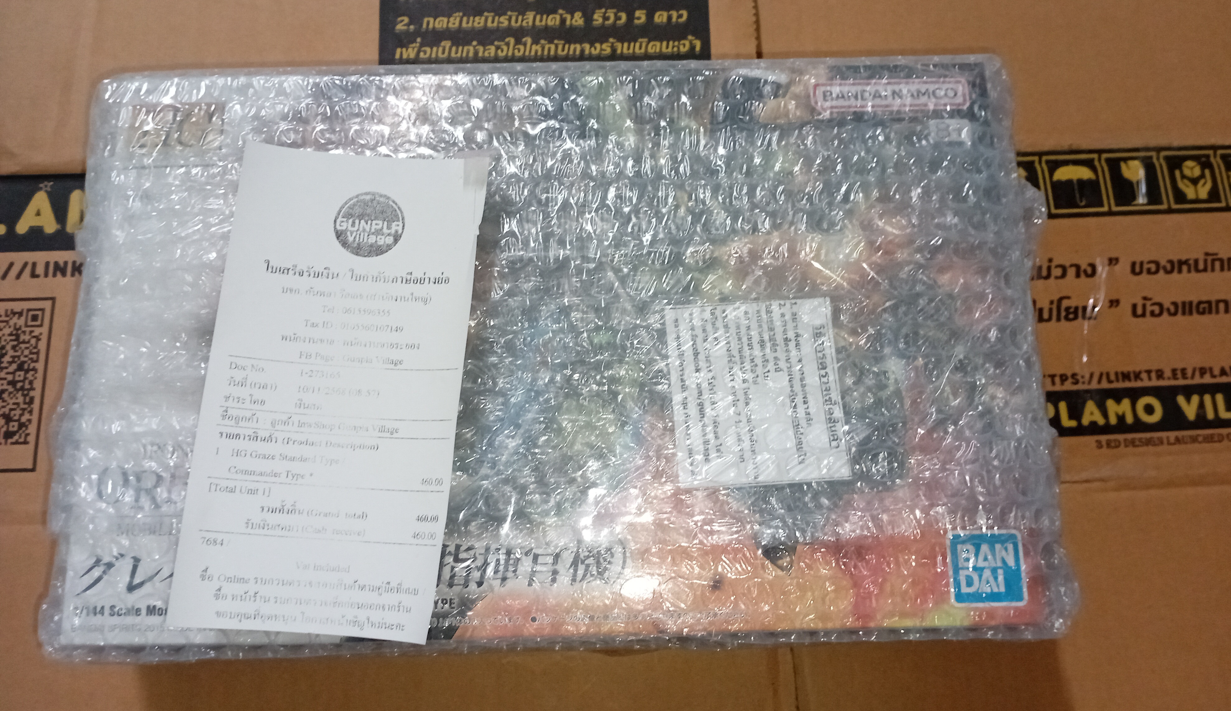 เมื่อผมเปดกล่องพัสดุ, ผมพบว่ากล่องของหุ่นโมเดลมันได้ถูกกระแทกจนบอบช้ำ. ต้องถือว่าโชคดีมากนะครับที่ส่วนประกอบข้างในไม่ได้รับความเสียหาย.